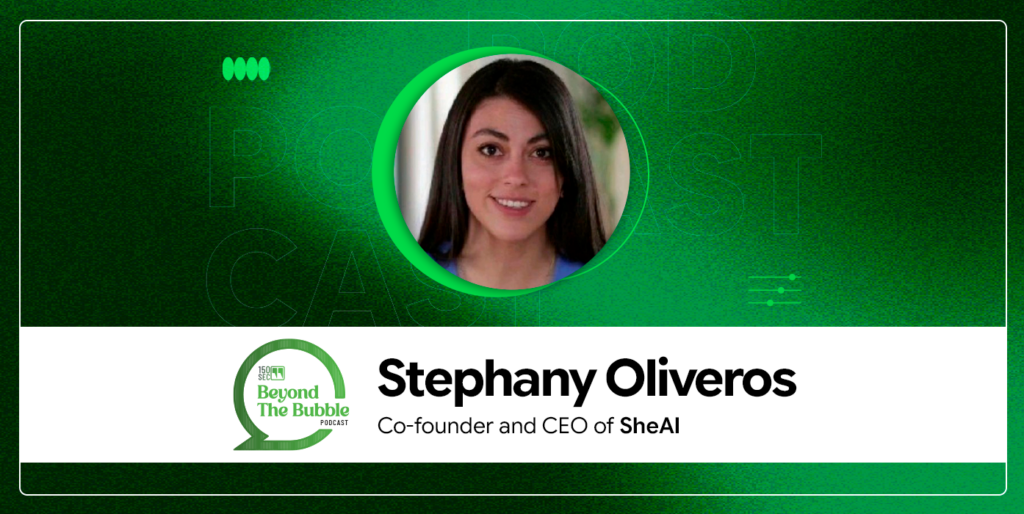 In a recent conversation with 150sec’s Beyond the Bubble podcast, Stephany shared more about what inspired her journey from studying medical physics in Venezuela to psychology in Spain, to working with tech companies and eventually starting her own startup in SheAI. The conversation covers the gender imbalances in the AI industry at large, why women tend to be more worried about AI, what it means for AI to be truly ethical, and how SheAI is addressing all of these issues through its platform and community.