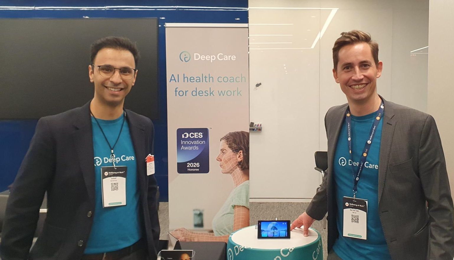 Deepcare, a German healthcare startup that recently expanded into the U.S. and attended the New York summit, has developed an AI-powered workplace health assistant called Isa which uses AI to analyze breathing, gaze behavior and micro-movements.