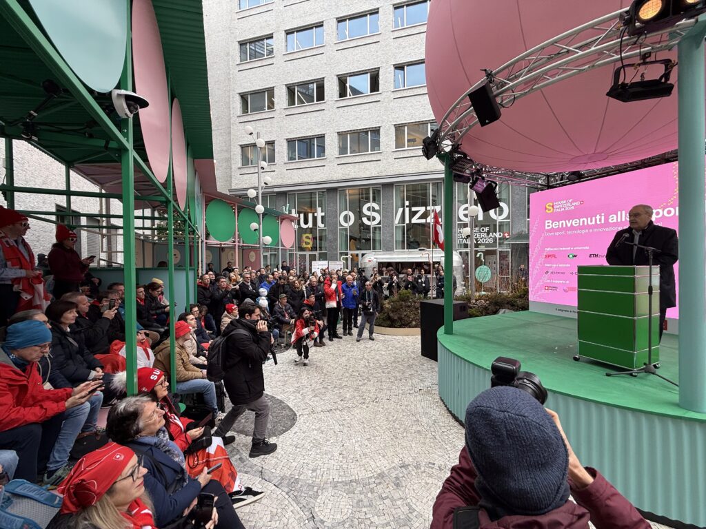 Swiss officials buoyed sport tech on a global stage, using the House of Switzerland in Milan—the country’s public presence at the Olympics—to showcase technology such as sensors that provide real-time feedback to ski jumpers and an ice hockey shooting simulator.